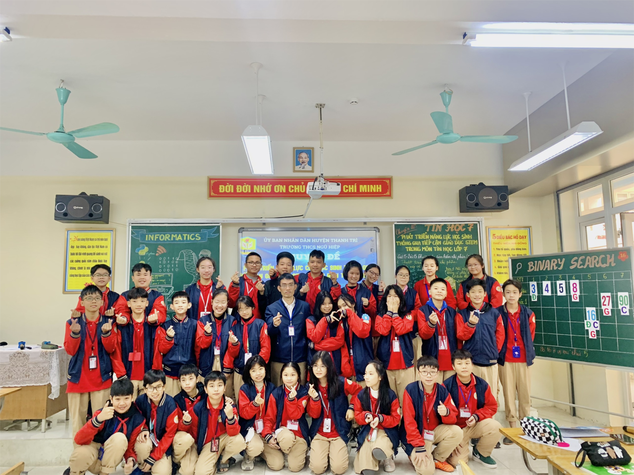Thực hiện sự chỉ đạo của PGD Huyện Thanh Trì về việc tổ chức các buổi sinh hoạt chuyên đề, sáng thứ năm, ngày 08/12/2022, trường THCS Ngũ Hiệp do thầy giáo Nguyễn Đắc Hưng cùng tổ nhóm Toán – Tin – Công nghệ đã thực hiện thành công Chuyên đề lớp 7 môn Tin học “ Phát triển năng lực cho học sinh thông qua tiếp cận giáo dục STEAM trong môn Tin học 7” qua bài 15 – Tiết 14: “Thuật toán tìm kiếm nhị phân”. Tham dự chuyên đề cùng nhà trường, có đồng chí Lã Tuyết Nhung - chuyên viên PGD Huyện Thanh Trì, các đồng chí Ban giám hiệu và giáo viên giảng dạy bộ môn Tin học các trường THCS trong Huyện Thanh Trì.