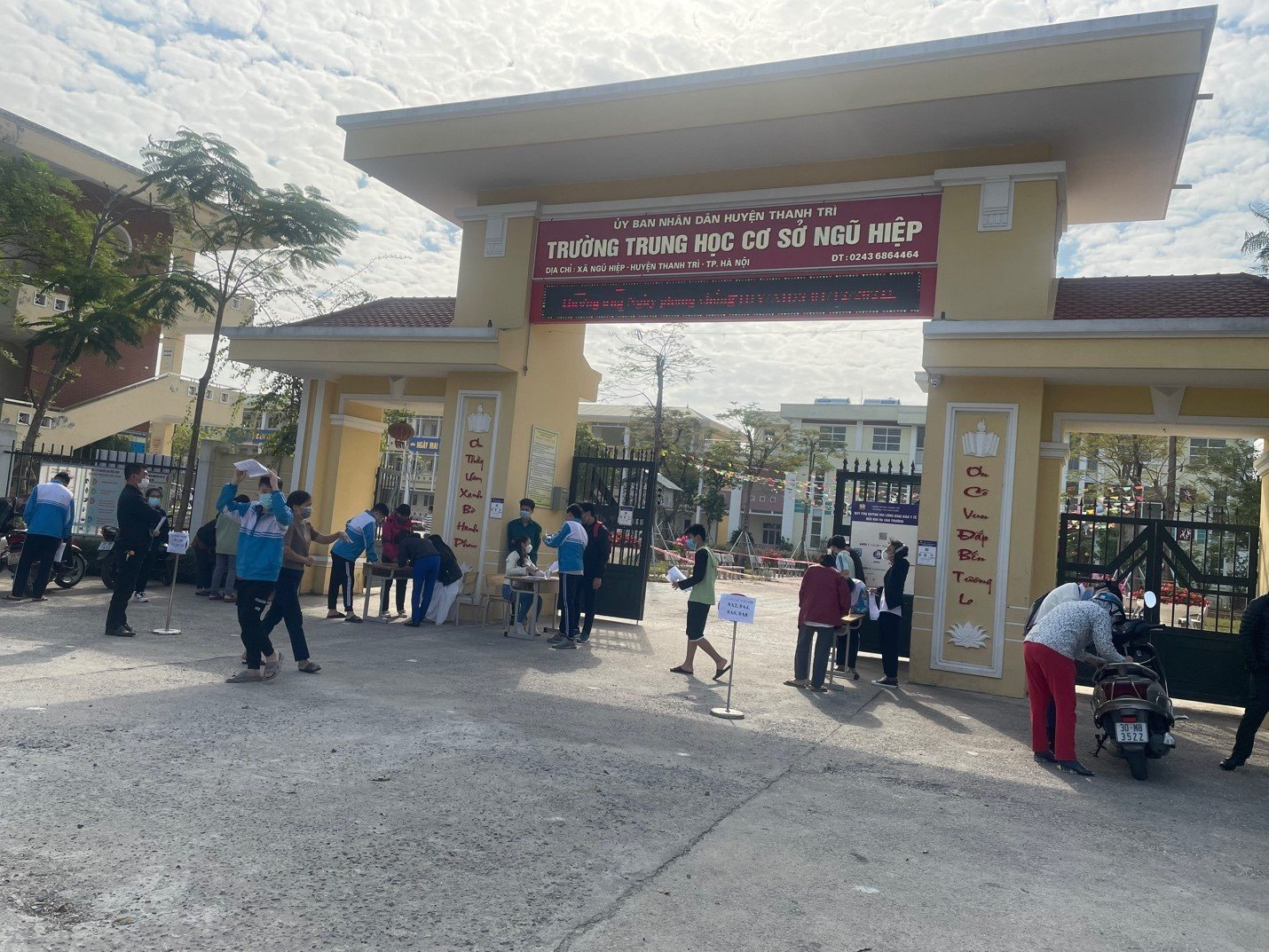 Trước tình hình dịch bệnh Covid-19 đang diễn biến phức tạp, Đoàn thanh niên trường THCS Ngũ Hiệp đã và đang tổ chức triển khai các hoạt động với nhiều hình thức, cách làm thiết thực nhằm phát huy vai trò xung kích của tuổi trẻ góp phần chung sức, quyết tâm đẩy lùi đại dịch Covid-19. Theo sự chỉ đạo của cấp trên, học sinh các khối 7, 8, 9 sẽ tiêm phòng covid – 19 vào 2 ngày 27/11 và 30/11. Đoàn thanh niên đã tham gia hỗ trợ công tác tiêm phòng vacxin phòng covid – 19 tại điểm tiêm trường THCS Ngũ Hiệp.