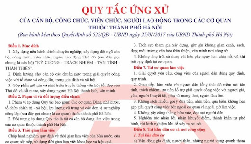 - Nội dung: Tuyên truyền thực hiện quy tắc ứng xử của cán bộ, công chức, viên chức, người lao động trong các cơ quan thuộc thành phố Hà Nội” năm 2021