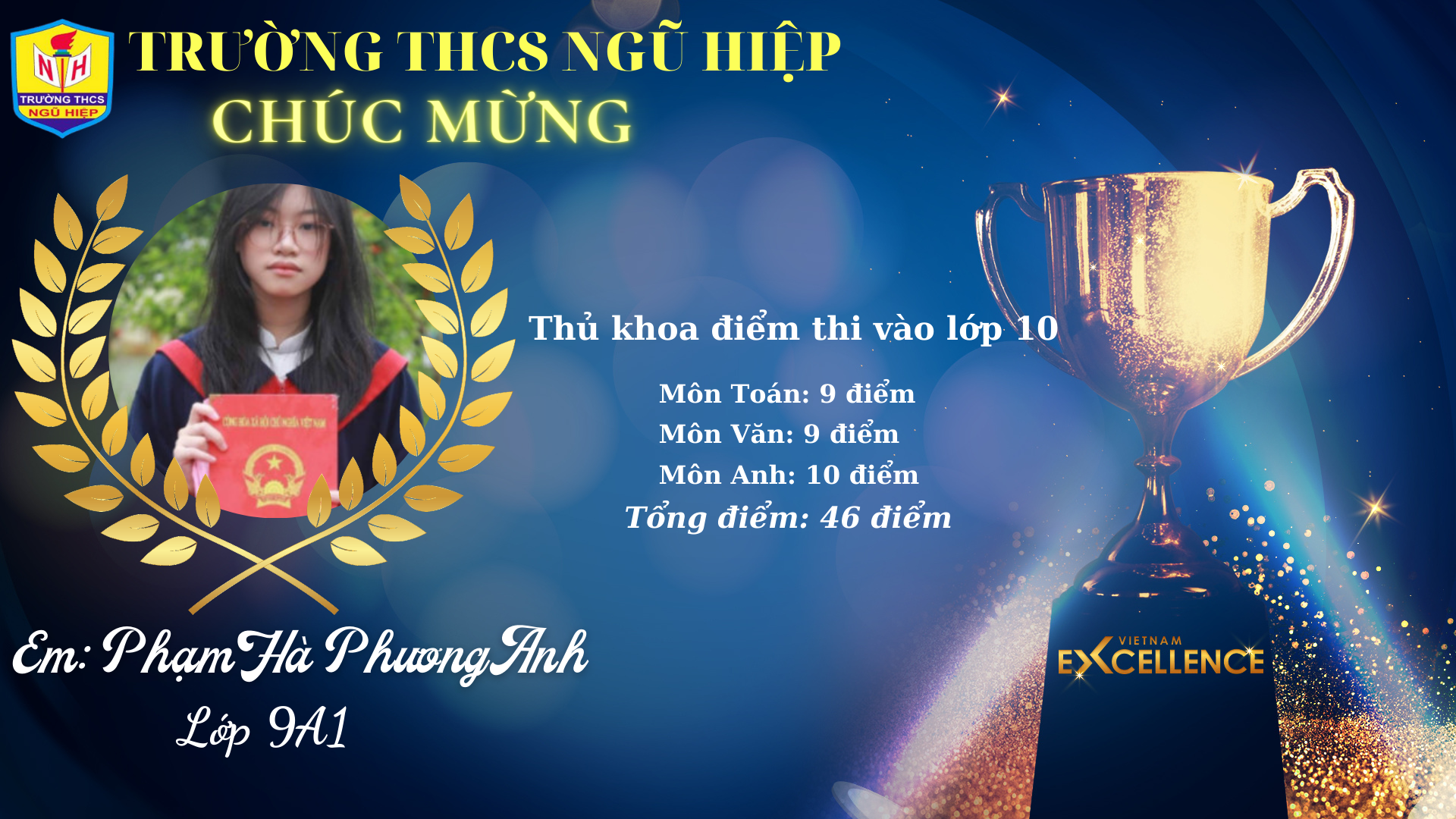 Chúc mừng các em đã thực hiện được ước mơ của mình! Các em đã thực sự trưởng thành và có thể tự tin vững bước trong những môi trường rộng lớn hơn. Xin trân trọng cảm ơn các thầy cô giáo đã luôn nhiệt tình, tâm huyết và yêu thương học trò. Xin trân trọng cảm ơn các bậc phụ huynh đã luôn tạo mọi điều kiện tốt nhất cho các con, luôn tin tưởng, và đồng hành cùng thầy trò nhà trường để các con có được thành tích như ngày hôm nay!