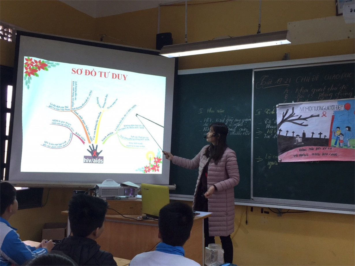 Tổ, nhóm chuyên môn cùng trao đổi, thảo luận, xây dựng chuyên đề. Đảm bảo đa dạng các hoạt động dạy học nhằm phát huy tính tích cực của học sinh. Khuyến khích việc đưa ra các hoạt động trải nghiệm sáng tạo để phát huy hết năng lực của người học, tạo không khí sôi nổi, hứng thú cho giờ học. Học sinh cũng cùng các thầy cô tham gia vào khâu chuẩn bị cho chuyên đề. Các em tìm hiểu những kiến thức cơ bản về HIV/AIDS, tìm các số liệu, hình ảnh liên quan, đóng vai thể hiện tình huống, vẽ tranh, sáng tác khẩu hiệu, thuyết trình về bức tranh mang thông điệp đến cho mọi người.