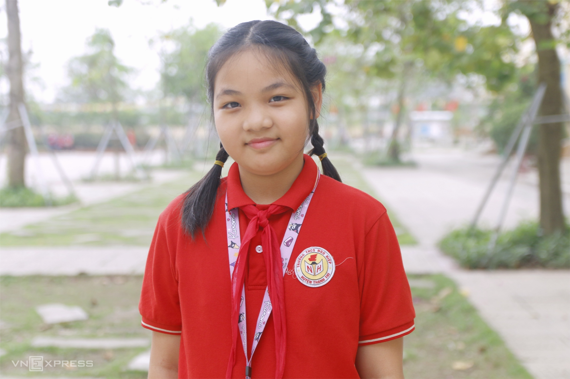 Nguyễn Thiên Kim, học sinh lớp 6A11, trường THCS Ngũ Hiệp, huyện Thanh Trì, Hà Nội. Ảnh: Thanh Hằng