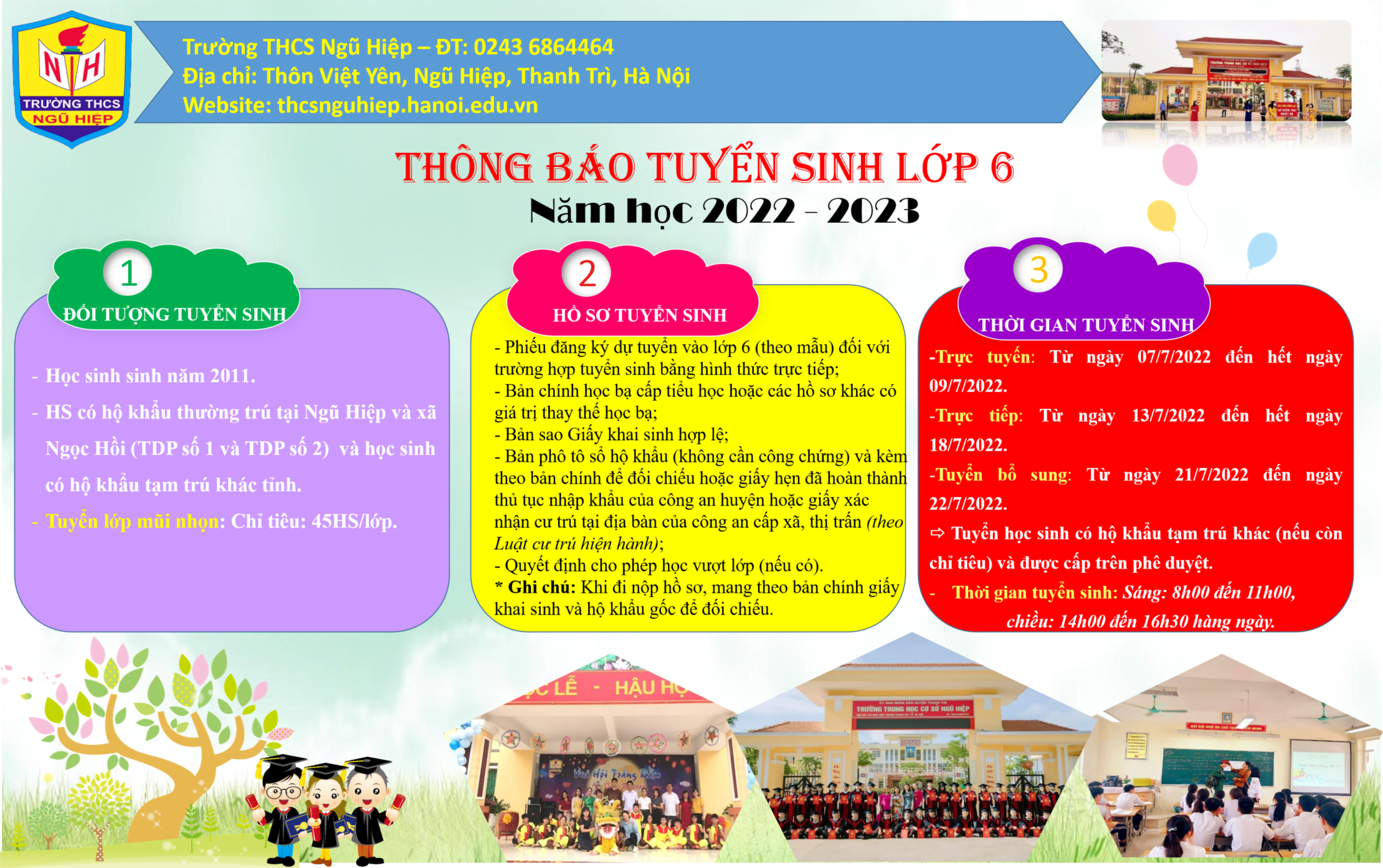 Trường THCS Ngũ Hiệp thông báo về kế hoạch tuyển sinh lớp 6 năm học 2022-2023:
