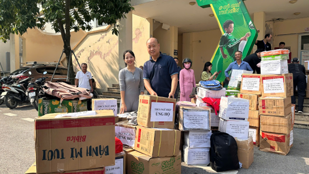 Sáng ngày 07/11/2024, tại nhà thi đấu huyện Thanh Trì, cô Phạm Ngọc Quỳnh – giáo viên tổng phụ trách đã đại diện nhà trường chuyển số đồ dùng học tập quyên góp được cho đại diện báo Tuổi Trẻ Thủ Đô, để gửi tới các em học sinh vùng ảnh hưởng bởi lũ lụt.
